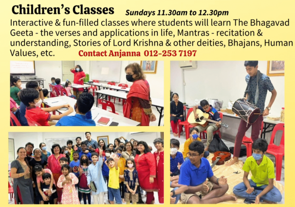 Every Sunday, the Geeta Ashram in Malaysia opens its doors to a warm and welcoming environment, designed specifically for children. Our Sunday Children Class aims to foster learning, creativity, and spiritual growth among young minds. In a place filled with love and support, children are encouraged to explore new ideas and make lasting friendships.